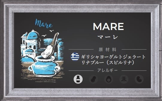 FLOR大人気フレーバーのギリシャヨーグルトに、天然の藻から抽出されたスーパーフード「スピルリナ」を配合。イタリアの海を思い浮かべるかのような鮮やかなマリンブルーのジェラートが完成。大人気フレーバーの1つです。