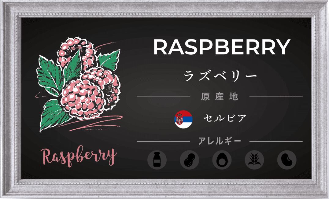 原材料名:ラズベリー果汁(セルビア製造)、蔗糖、ブドウ糖