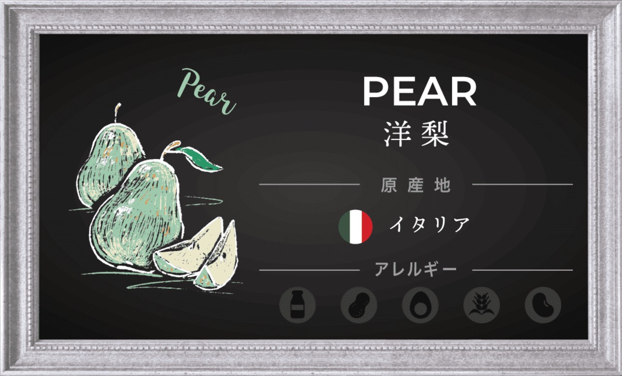原材料名:洋梨果汁(イタリア製造)、蔗糖、ブドウ糖