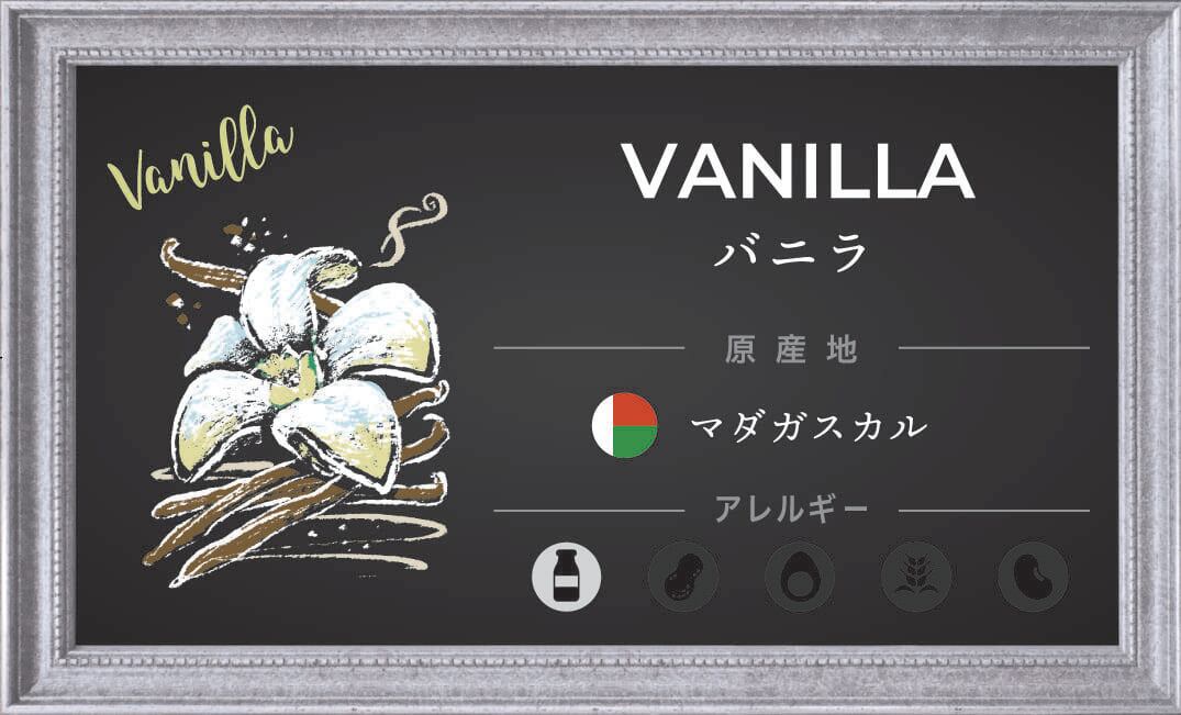 原材料名:牛乳(国内製造)、乳製品、蔗糖、ブドウ糖、バニラパウダー